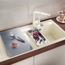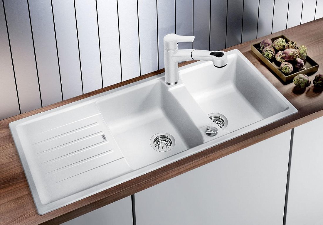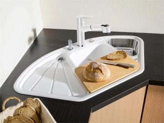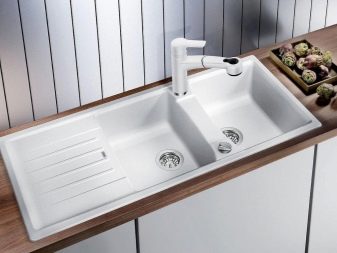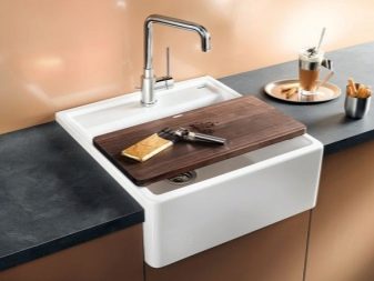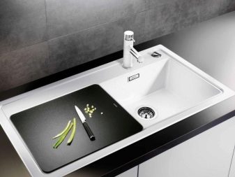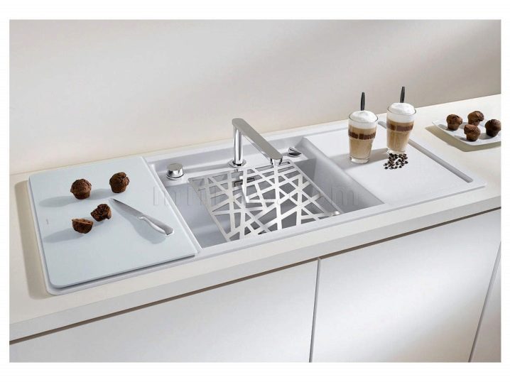 Pour simplifier sa vie, une personne cherche à acquérir non seulement des équipements «intelligents», mais également des meubles pratiques, des accessoires de la maison. Aucune exception n'a été le lavage de voiture blanche. Les modèles modernes des grandes marques Blanco, Franke, Teka, Alveus et Schock peuvent avoir de nombreuses variantes. Certains d'entre eux représentent une planche à découper en plus du produit principal. Ainsi, vous pouvez économiser de l'espace de travail en fermant l'évier au bon moment et en coupant les aliments pour les repas à venir.