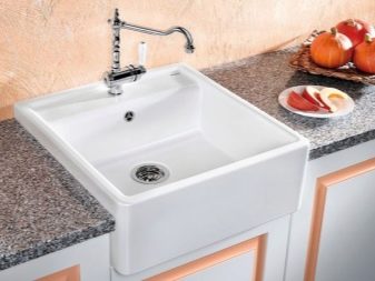 Un lavage en céramique blanche spectaculaire et de haute qualité est une option appropriée en raison de sa surface hygiénique, de sa résistance aux chocs, de sa vaste gamme de couleurs, de sa variété de formes et de configurations. De tels produits ont un poids spécifique suffisamment grand, sous l'influence de hautes températures, peuvent être déformés.