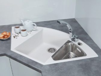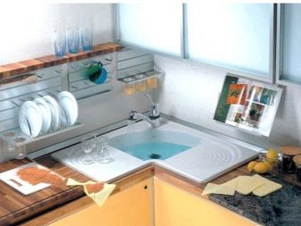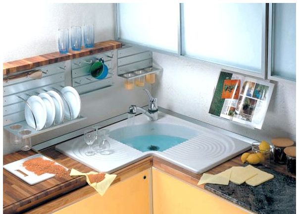Les environnements à la mode ajouteront des systèmes angulaires adaptés aux petites cuisines, modestes mètres carrés. En termes de capacité, ils sont inférieurs aux modèles rectangulaires, mais ils ne sont pas moins fonctionnels.