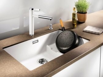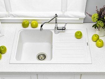 Une cuisine attrayante fera un évier de mortaise en pierre artificielle, durable, fort, facile à nettoyer. Lorsque vous choisissez un tel détail d'intérieur, vous devez faire attention à certaines nuances: