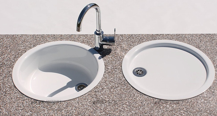 Le modèle émaillé est très populaire parmi les clients, malgré le grand nombre de séries de céramiques, porcelaines et pierres. Un tel matériau fait preuve de durabilité, de sécurité et de fiabilité. Ici, vous pouvez rêver sans fin sur le dessin, même si vous avez déjà choisi la couleur.D'autre part, l'émail blanc est sujet aux chocs, ne permet pas de nettoyer l'évier à l'aide de brosses métalliques, de détergents à particules abrasives.