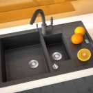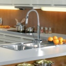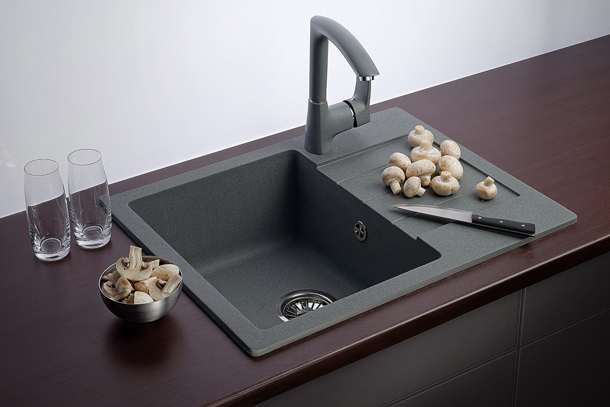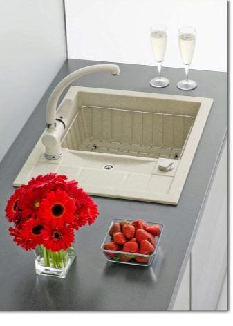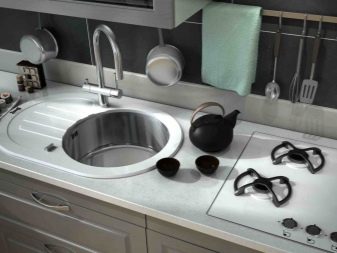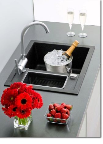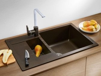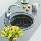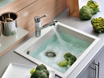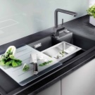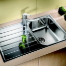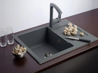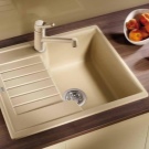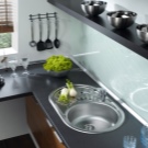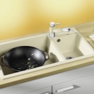 - L'attention mérite un choix judicieux du matériau dans lequel est fabriqué l'évier. Chaque intérieur a son propre type de revêtement - métal, pierre ou aggloméré, surfaces émaillées.
