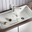 - Carreaux de porcelaine. Ce matériau, utilisé dans tous les types de structures de lavage, a un poids important. Les carreaux de porcelaine pour la force ne sont pas inférieurs à la pierre ou au marbre. L'évier esthétique de cette composition est destiné à une cuisine d'élite, créant un style spécial. Poser sur un évier en grès cérame est un achat de statut et coûteux pour votre intérieur.Avec un beau design, vous pouvez surmonter une partie de la monotonie des connexions indirectes, que les utilisateurs accusent souvent.