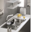 Il est un peu plus difficile d'organiser une place sous l'évier, qui a parmi les paramètres maximum standard - 800x600 mm. Il y a un risque que le robinet soit trop éloigné et que vous deviez le contacter. Vous devez donc penser à la conception et à l'emplacement de l'évier à l'avance. La profondeur optimale est de 19 cm. À cette profondeur, l’évier peut contenir une quantité suffisante de vaisselle pendant le lavage de laquelle l’eau ne s’écoulera pas hors de l’évier.