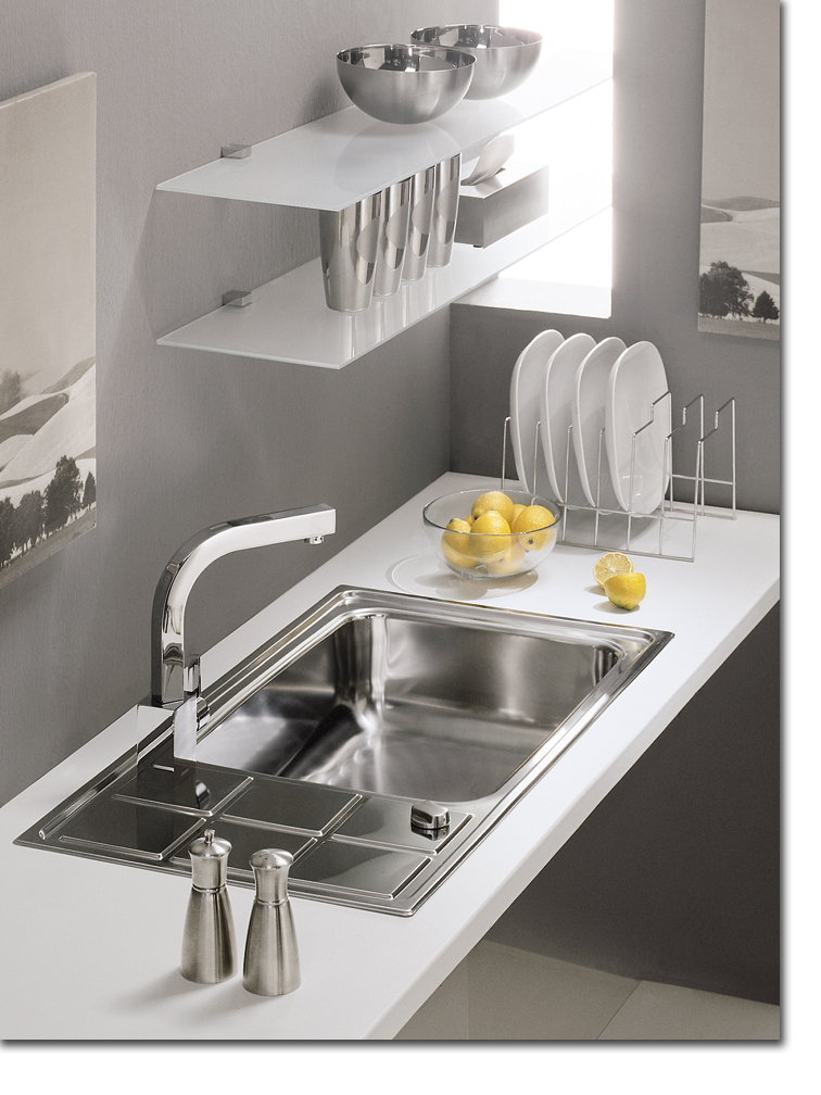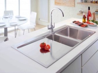 L’évier posé sans exagération peut être qualifié d’objet le plus important de l’intérieur. L’évier de cuisine est utilisé quotidiennement pour laver les aliments, à partir desquels les aliments sont ensuite préparés. Après chaque repas, la vaisselle est chargée dans l'évier et, si vous recevez souvent des invités, le grand modèle de l'évier est particulièrement important pour vous dans la cuisine. Il y a des éviers en acier simples et ceux qui comprennent plusieurs bols pour la vaisselle. La vaisselle et les autres articles fraîchement lavés ou sales sont généralement placés sur un plan de travail en métal situé à droite ou à gauche du bol.Cette surface est une alternance de petites dépressions et de dépressions. Ce type de plateau en métal ondulé ne permet pas aux objets de glisser dans le bol.
