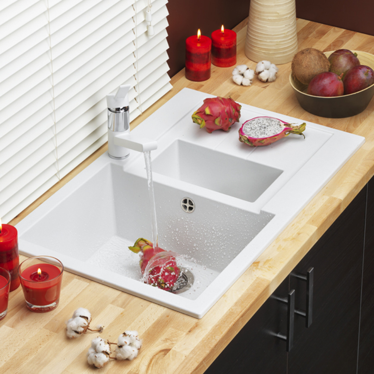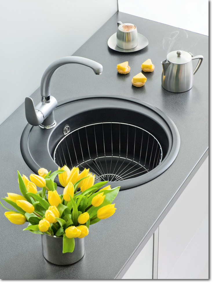 - Faites attention lorsque vous achetez principalement sur la forme de l'évier. Dans le cas d'une géométrie correcte, il vous sera facile de choisir un meuble pour votre évier, de l'installer et de le positionner correctement parmi les meubles de cuisine.