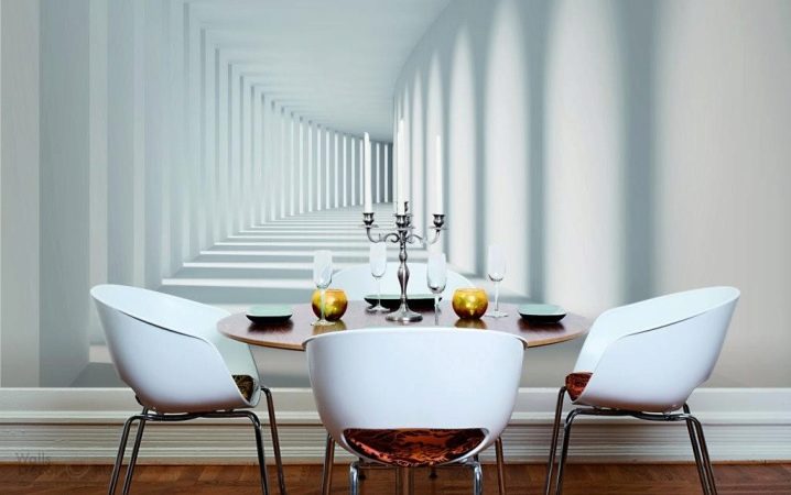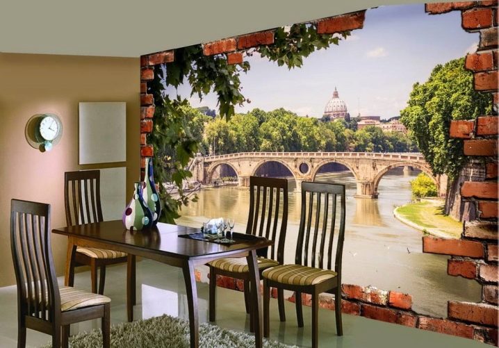 - Petite cuisine. Il est nécessaire de répondre immédiatement que les papiers peints 3D ne conviennent pas à une petite cuisine, car une illusion d'optique n'est perçue que dans un grand espace.