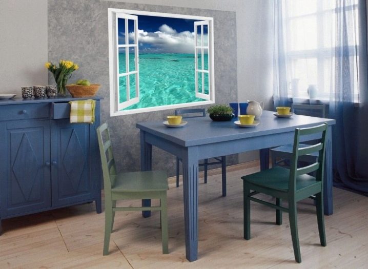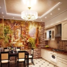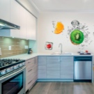 L'impression 3D, l'impression photo, les autocollants en vinyle restent à la mode. Ce papier peint à la mode ajoutera à l'originalité de la parcelle intérieure. Chat Cheshire au plafond ou herbe fraîchement coupée sous les pieds,De fines branches de sakura sur les murs ou des boutons de fleurs lumineuses? Dans cette cuisine, vous n'avez pas besoin de changer l'eau des vases tous les jours pour exposer le panier avec des fruits périssables.