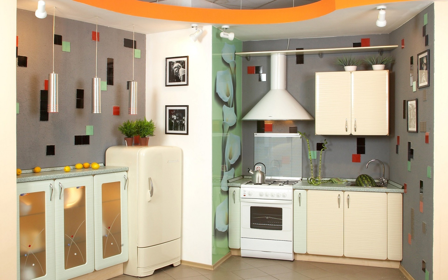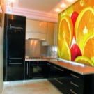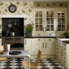 La cuisine est une carte de visite de toute hôtesse. Un point important dans la conception du lieu de travail sera le choix du revêtement de sol, du mobilier et du papier peint. Le mieux est que ces éléments soient exécutés dans une échelle de couleurs. L'utilisation de n'importe quel motif, ornement "va régler" une atmosphère particulière dans la pièce, donnera une individualité à l'intérieur. Il serait utile d'utiliser des infographies humoristiques, des lettres, etc. Préférez-vous un liquide ou du papier, du vinyle ou de la fibre de verre?