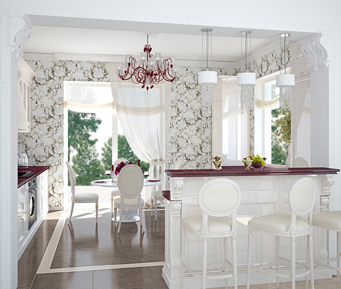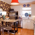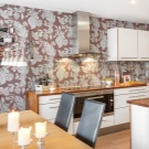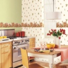 Si vous souhaitez créer un lieu de travail fonctionnel dans la cuisine dans un style minimaliste, regardez le papier peint dans une palette sobre: blanc, graphite, sable, bois, crème ou bleu tendre. Pour un kitsch ou un éclectisme difficile et quelque peu agressif, procurez-vous un papier peint hétéroclite dans la cuisine avec d’énormes impressions, des applications, des motifs. De façon tendre cerise, bourgogne et marsala,qui sont faciles à combiner avec une pêche, de couleur rose clair.