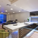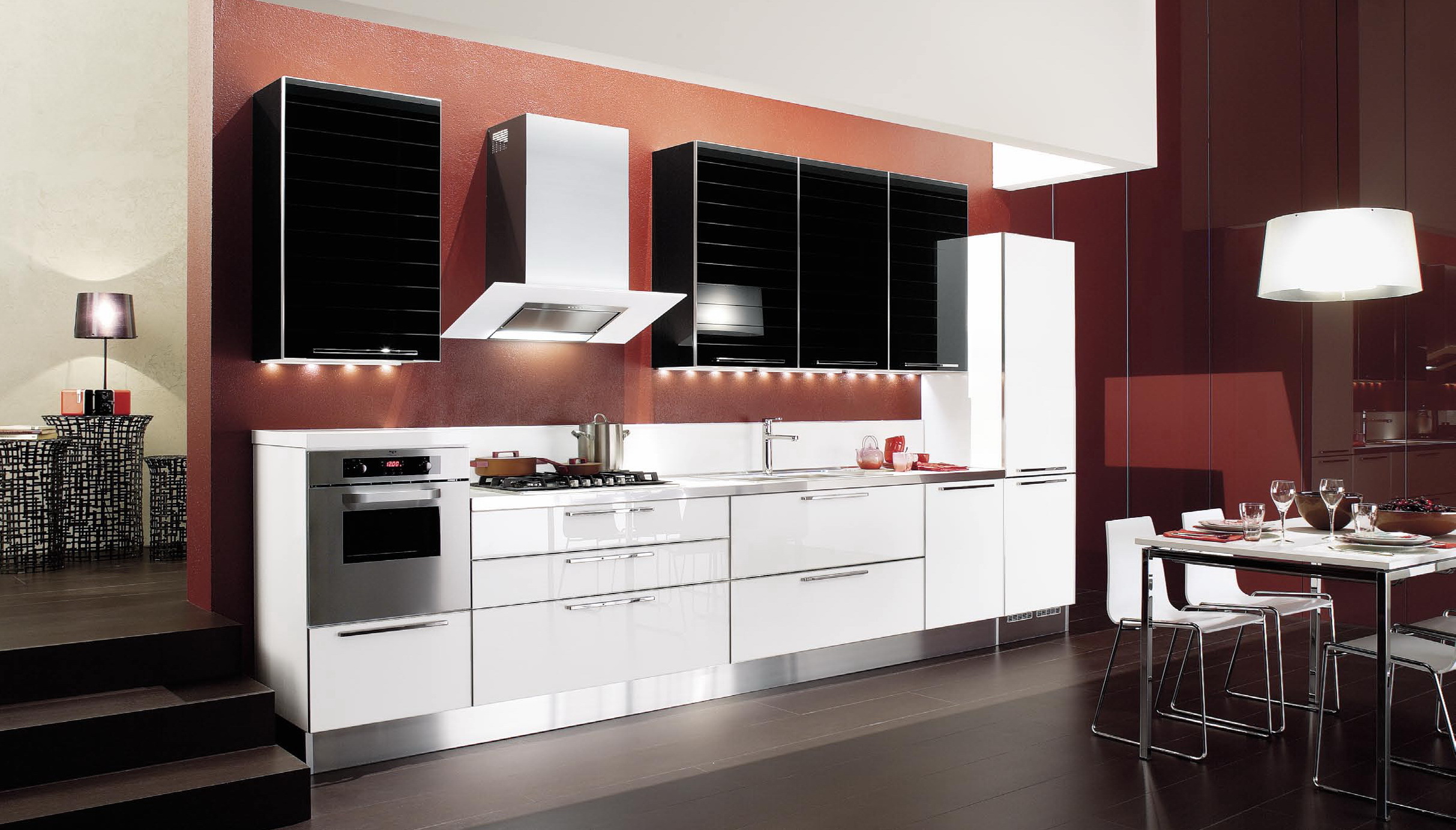 En organisant l’éclairage de la pièce, assurez-vous que l’éclairage général puisse allumer des pièces, et non en une fois. Ne pas économiser sur la lumière, surtout pour une cuisine sombre. Garland ou des LED peuvent créer un effet saisissant, une imitation et même une visualisation avec un fond d’écran 3D, mais d’un point de vue pratique, une telle lumière plantera rapidement votre vue.Mais dans les cuisines lumineuses, vous pouvez vous débrouiller avec une bande de LED brillante pour la nuit et un luminaire central au plafond.