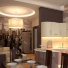Lors de la planification des projets de conception, il est préférable d’accrochez les lampes au plafond, au centre et autour du périmètre de la cuisine. Cela ne créera pas de coins sombres, y compris sur les murs. En achetant de beaux fonds d'écran, il est important de les présenter de manière rentable. L'éclairage vous aidera à comprendre ce problème. L'utilisation d'un projecteur intégré, d'un luminaire à poser, de barrettes de LED, de barres omnibus et de modèles suspendus sera pertinente.