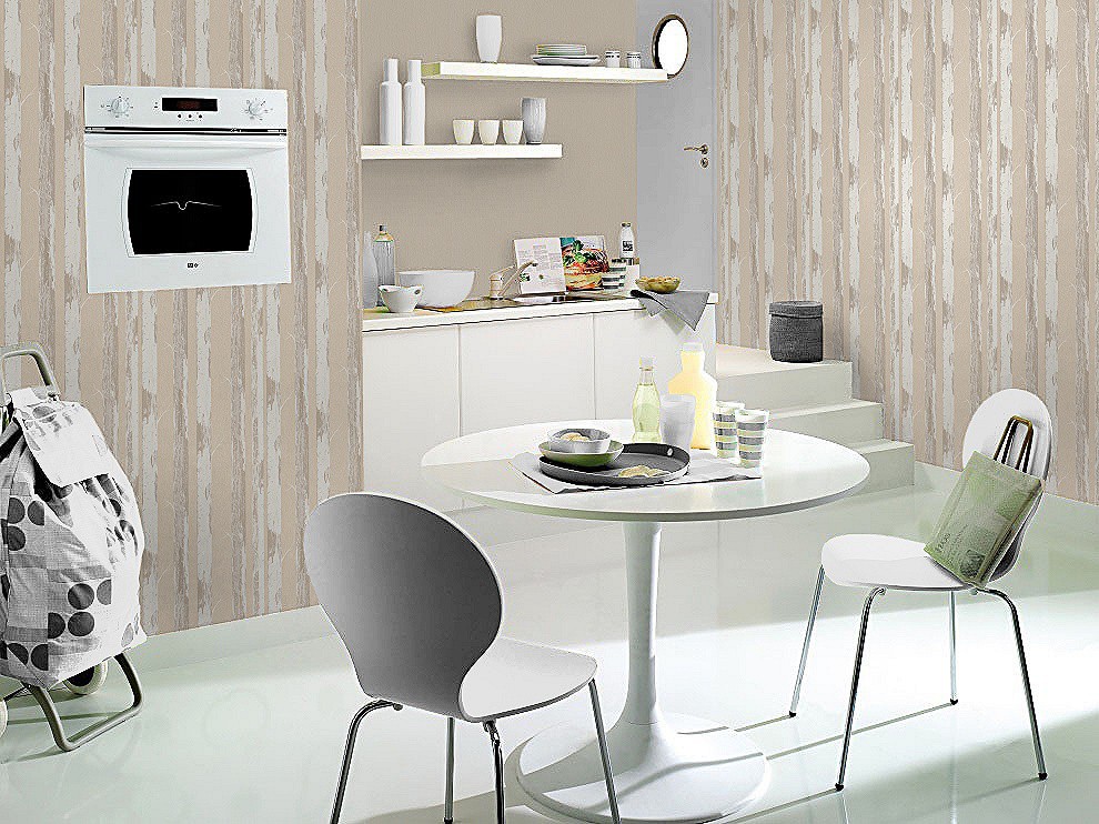 Avec le papier peint en vinyle, vous ne verrez pas de rétrécissement sur les murs, les zones brûlées en raison de la lumière directe du soleil. Le produit fournit une excellente circulation d'air. Cela garantira que la cuisine ne créera pas son propre «microcosme»: moisissures, champignons, etc.