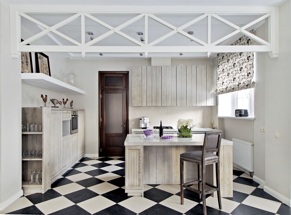 La cuisine "aux échecs" en noir et blanc constituera également une bonne zone de confort. Concision, minimalisme et une combinaison classique de couleurs vont ajuster le yin-yang promis à l'intérieur, ajoutant de la rigueur et de l'élégance à tous les mètres carrés.