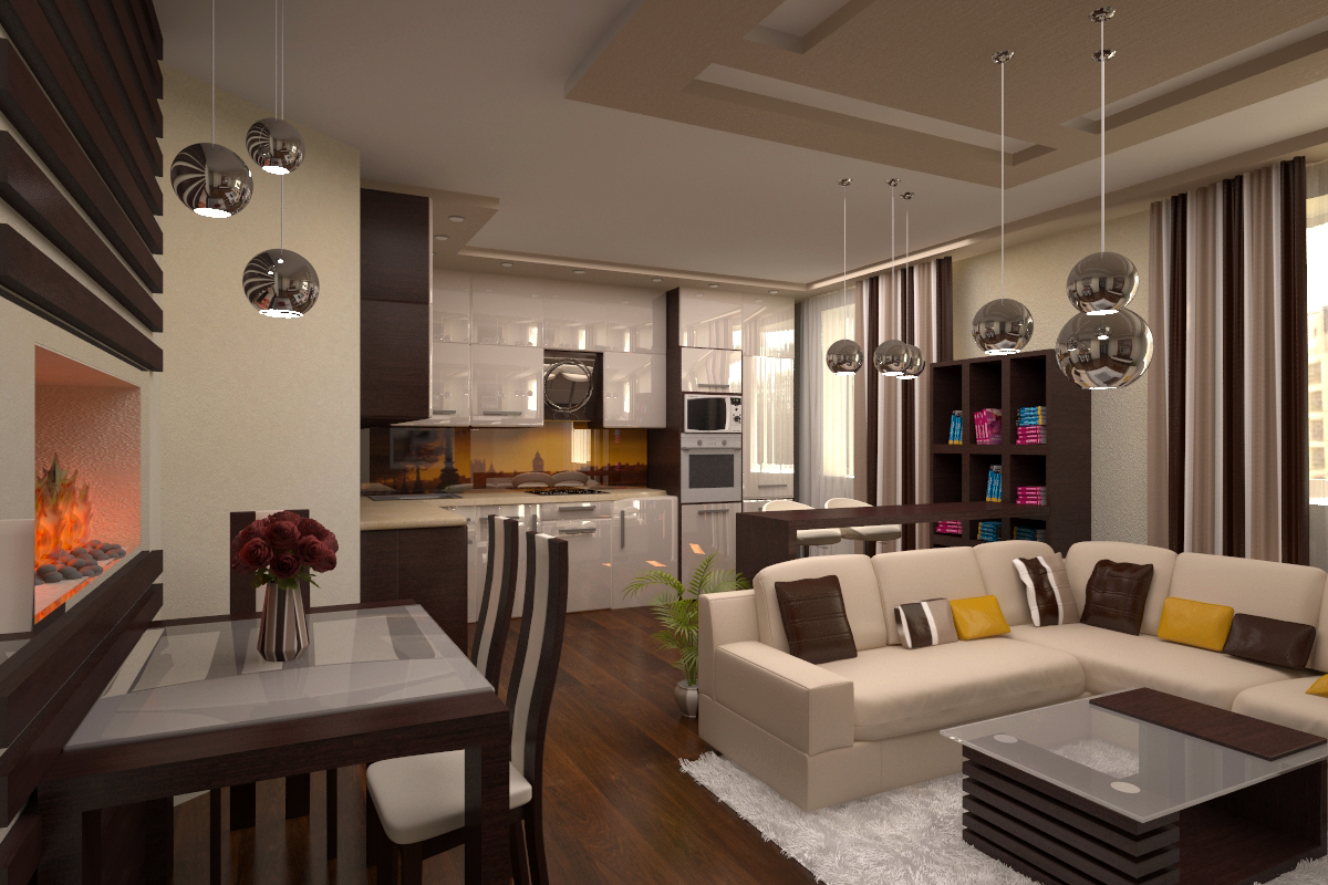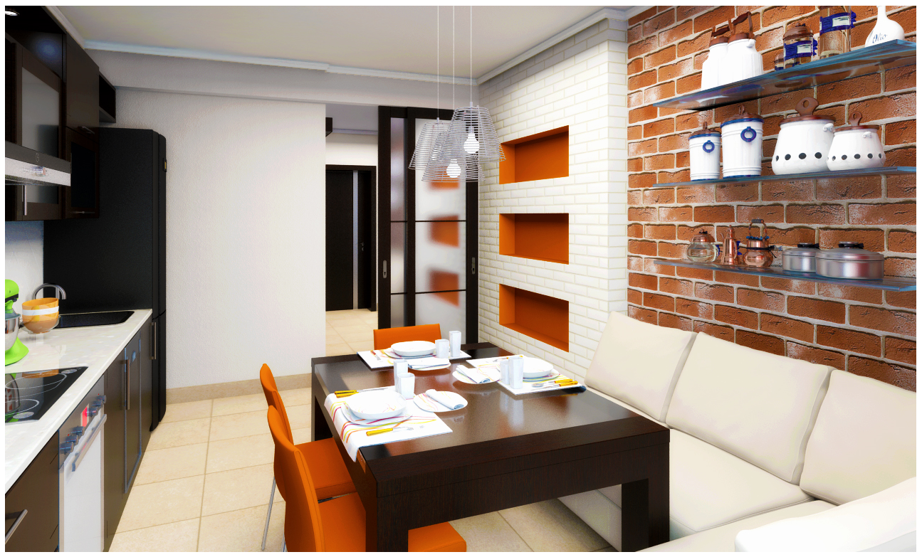 Aujourd'hui, la cuisine de 8 mètres s'adapte à un meuble. Très probablement, il s’agit d’un studio ou conçu pour une petite famille. Jouez avec l'éclairage, collez du papier peint à l'imitation du bois, du ciel, des rues, afin de mieux "augmenter" la taille des compteurs modestes dans la cuisine.