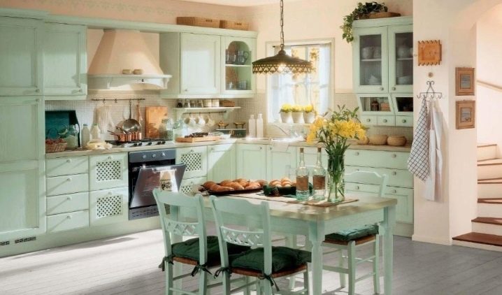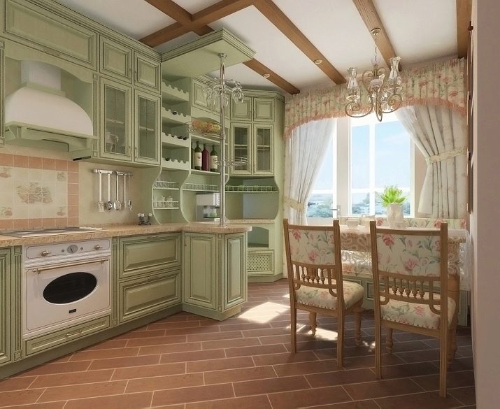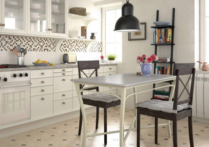 Une conception intéressante se révélera dans les cuisines avec des plafonds bas, si vous les arrangez dans un style loft. Regardez le papier peint avec imitation de stuc néoclassique, poutres dans un style campagnard. Un décor éclectique, grunge, une Provence chaleureuse et confortable, des notes de style urbain auront l'air provocant.