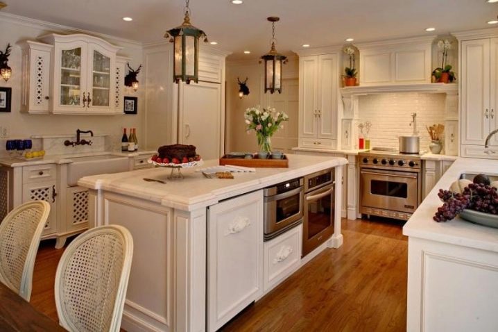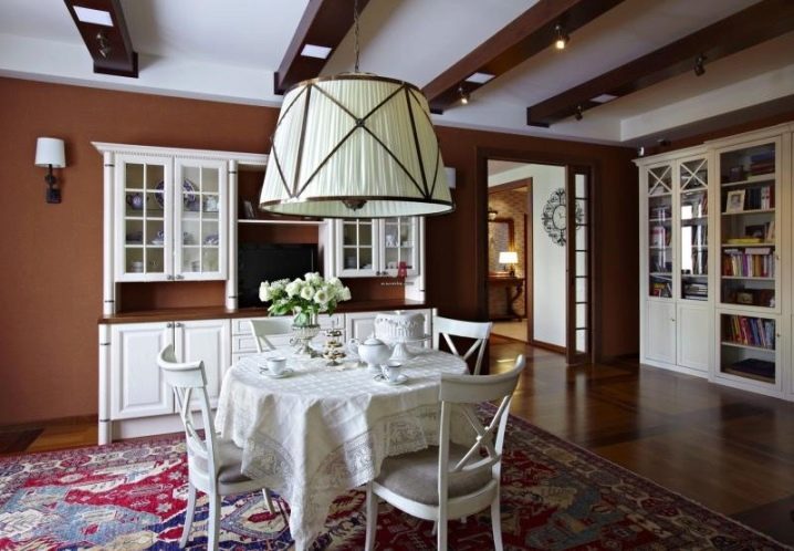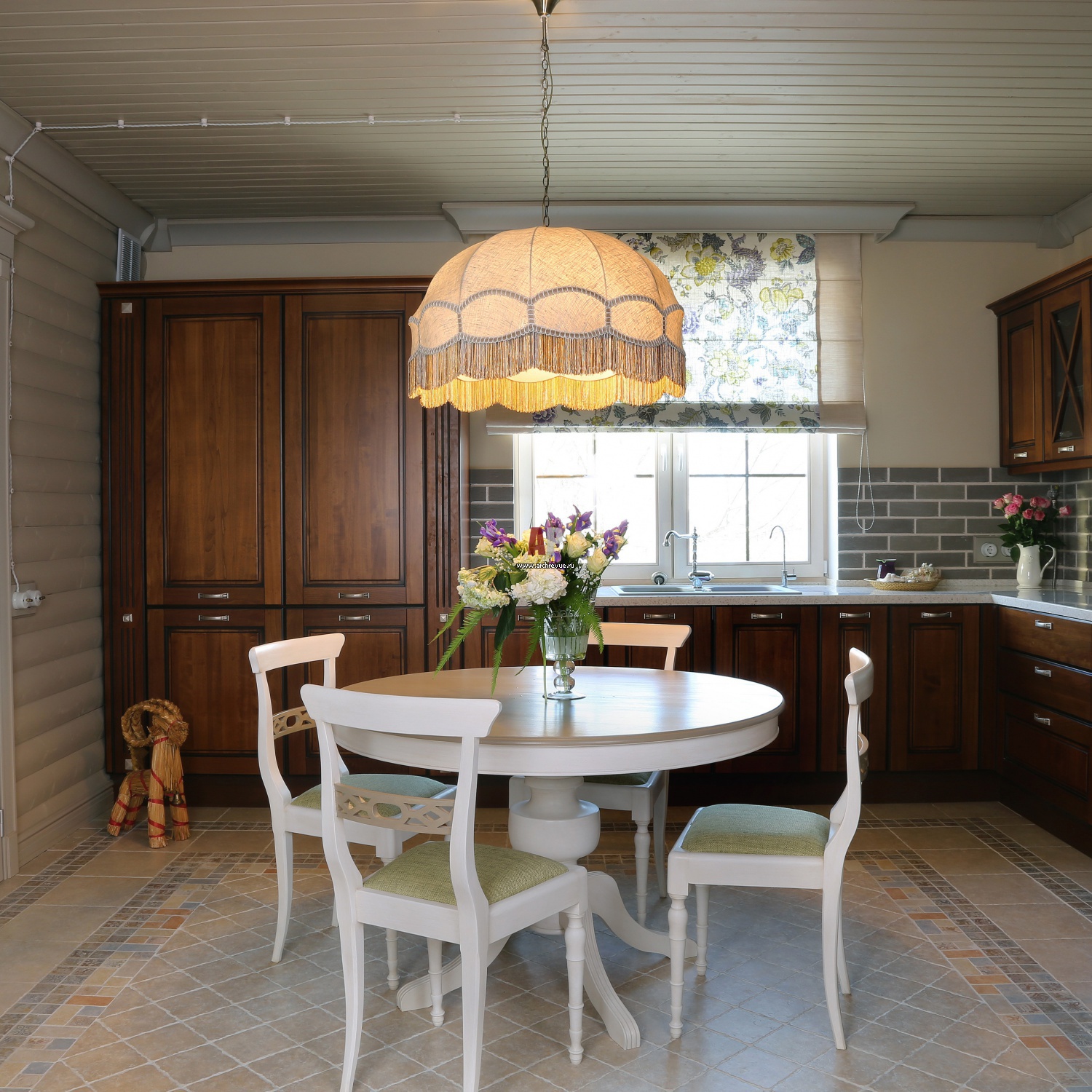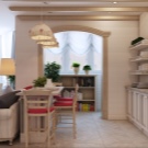 Le point culminant de l'intérieur sera un lustre. Afin de souligner le style général de placement d'un lustre dans la cuisine, il ne doit pas être massif et fantaisiste, une décoration excessive avec des pierres est également inappropriée.