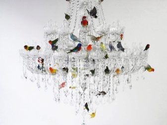 Les vieux lustres de plafond peuvent être enlevés et, à l'aide d'un fil métallique, Obtyanuv crée un nouveau cadre à carreaux dans un style patchwork.Même un simple plafond de verre peut être peint avec des peintures acryliques dans des thèmes végétaux. Il est possible de transformer le lustre ancien habituel avec des fleurs en pâte polymère, afin qu'il s'intègre parfaitement au style naturel de votre choix.