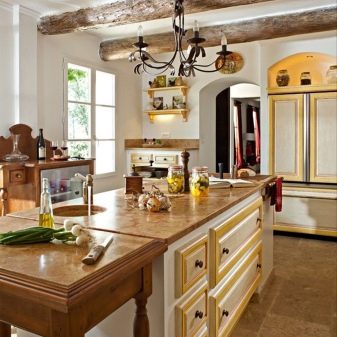 Vous pouvez compléter l’intérieur de la cuisine de style provençal avec des cintres et des cadres photo forgés, et des plats en terre cuite lui donneront une touche particulière.
