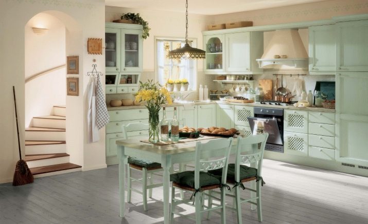 Pour une telle cuisine est caractérisée par doux, comme si légèrement fanée au soleil peinture entrecoupée d'accents clairs correctement espacés. À l’intérieur de la Provence, vous pouvez sentir l’herbe fraîche et la mer à chaque coin de rue. Les couleurs principales sont vert clair, bleu, pêche, beige, olive, lilas pâle, lavande, tons pastel de roses.