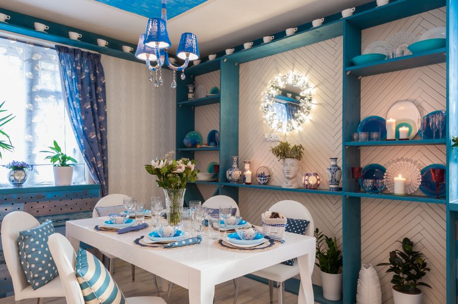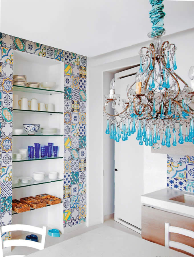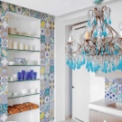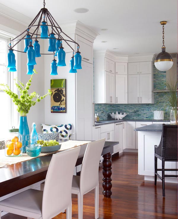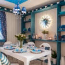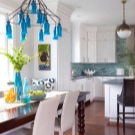 - Bleu, cyan et turquoise. Une des couleurs les plus populaires des lampes. Cette couleur ressemble au ciel et a l'air très frais. Ces couleurs ont fière allure dans divers intérieurs. Lustre bleu ou bleu ira bien dans la cuisine dans un style classique. Les dernières saisons à la mode sont des lustres de perles turquoise.