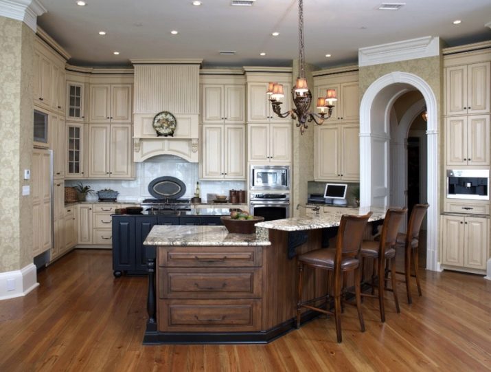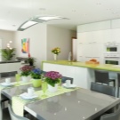 Classiquement, les lustres peuvent être divisés en deux types.Le premier comprendra les frais généraux et le second des lustres suspendus. La caractéristique de choix sera la hauteur du plafond et la taille de la pièce. Vous pouvez également installer des lampes de cuisine non seulement au centre, mais également dans différentes parties de la cuisine. De cette façon, vous pouvez mettre en évidence la zone de travail, se reposer et manger. Les plafonniers sont choisis principalement dans la couleur de la lumière.