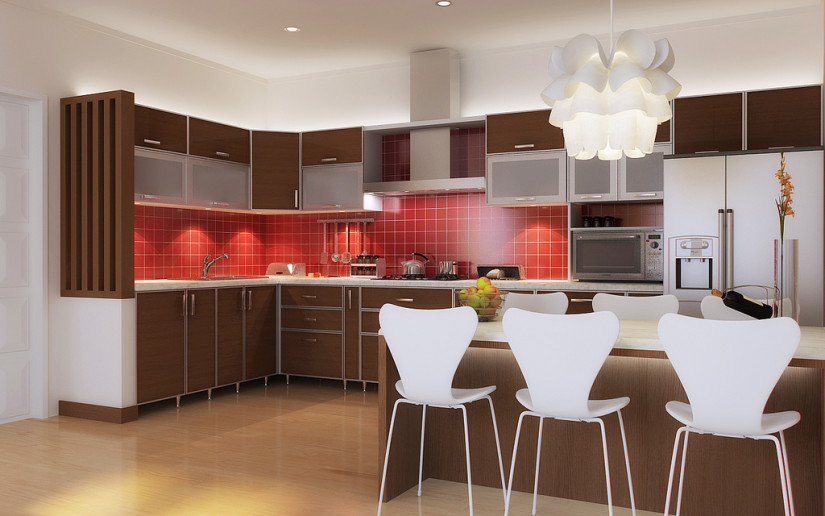 - Rouge et rose. L'explosion de luminosité et le foyer principal dans la pièce. Ce lustre semble approprié dans la cuisine dans le style du glamour ou du baroque. Il est important de comprendre qu'un tel accent ne peut attirer l'attention que sur lui-même. Un lustre rouge ou rose dans la cuisine ressemblera à un dessert et suscitera un bon appétit pour les propriétaires. La couleur chaude et accentuée ajoutera certainement du piquant à l'intérieur.