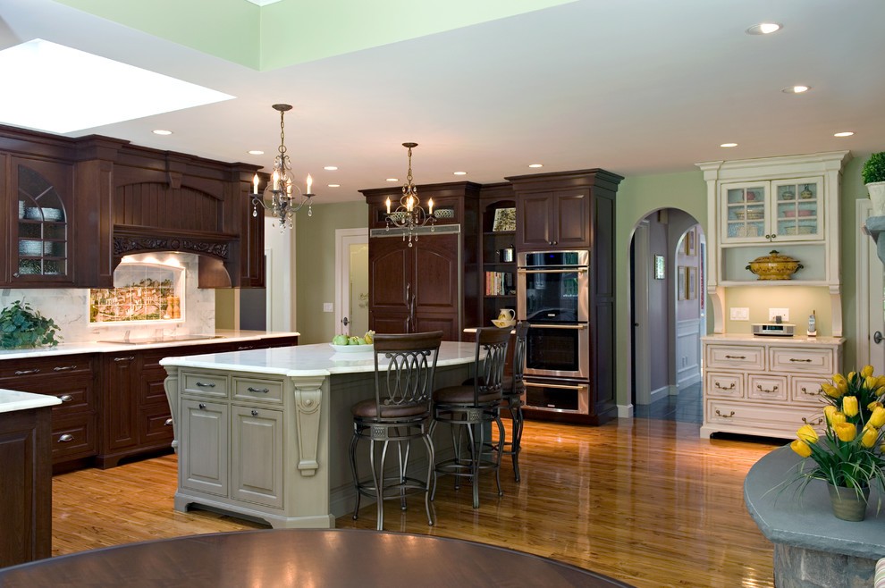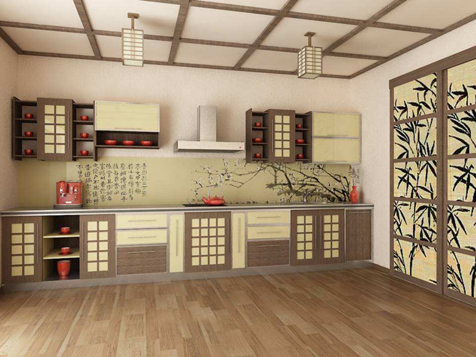 Dans la cuisine de style oriental, les longs lustres en forme de boules de bronze foncé auront l’air original.