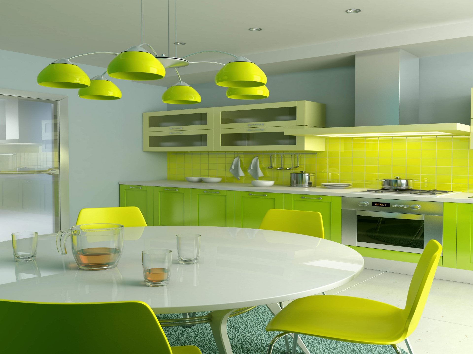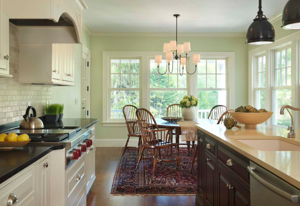 - Vert. Un lustre vert va décorer n'importe quelle pièce et lui donner de la noblesse. Cela ajoutera de la fraîcheur et du raffinement à la cuisine. Lustre Lime aura également fière allure dans la cuisine. De plus, c'est l'ombre la plus en vogue de l'année à venir.