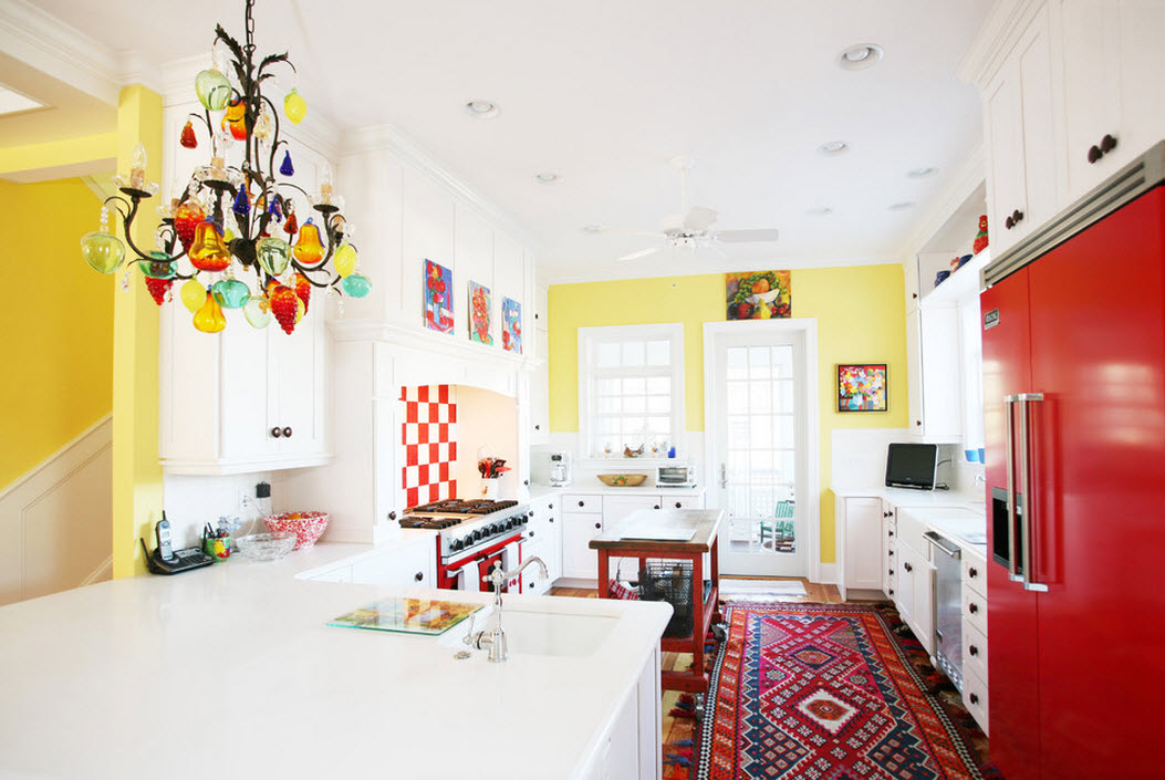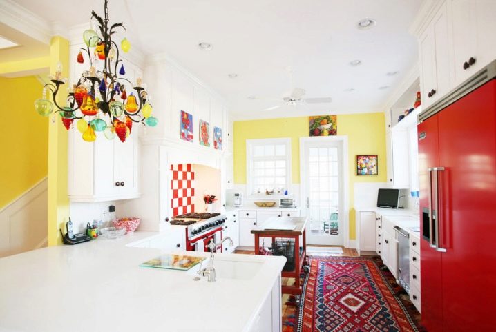 Avant d’aller au magasin, beaucoup de personnes se posent des questions sur les couleurs du lustre. Dans ce domaine, vous devez être guidé par le concept général de l'intérieur et de vos goûts. Pour la cuisine dans la version classique, choisissez généralement un lustre en métal neutre, en verre, en plastique ou en cristal. Les lustres colorés ont fière allure à l'intérieur avec un minimum de décoration. Dans cette conception, le lustre agit comme l'accent principal dans la pièce. Les lustres de couleur dans la chambre des enfants sont très populaires.