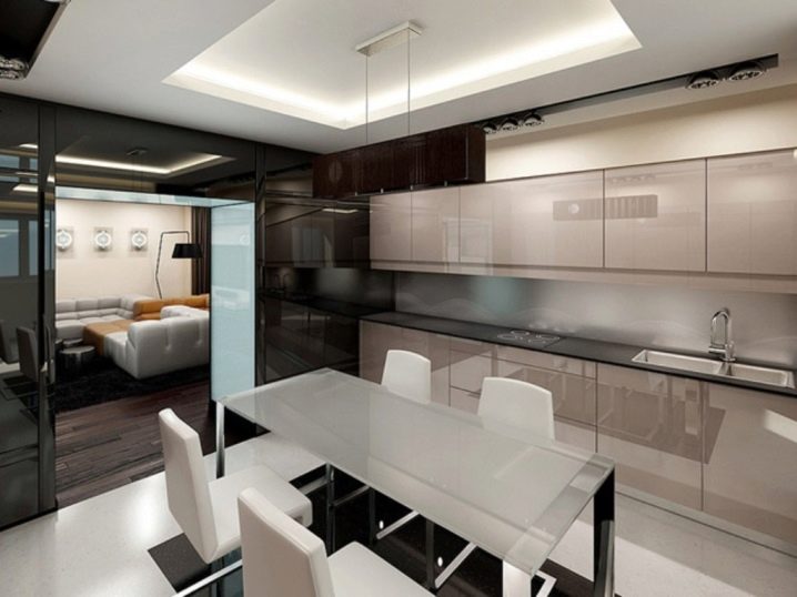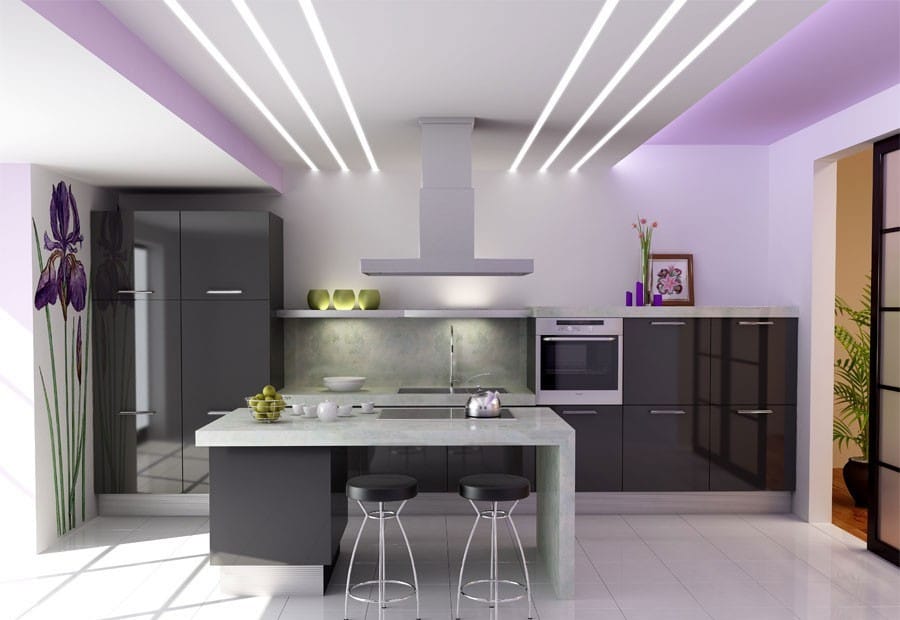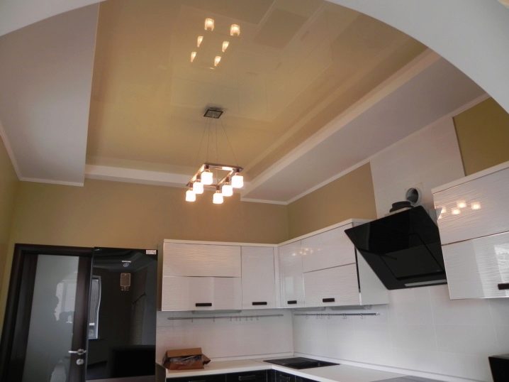 Beaucoup de gens ont aimé installer des plafonds tendus non seulement dans la chambre ou le couloir, mais également dans la cuisine. À cet égard, beaucoup de nos compatriotes sont convaincus que le lustre traditionnel pour un tel plafond ne convient pas. Bien sûr, il existe de petites restrictions, mais le choix est toujours vaste et ne se limite pas aux projecteurs.