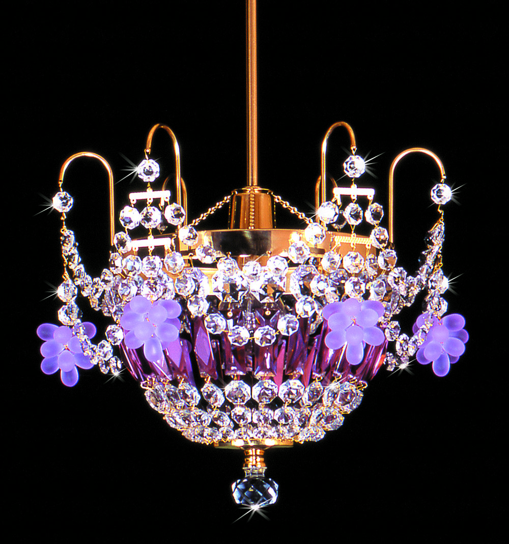 - Le style classique à l'intérieur comprend des lustres en forme de candélabre avec un grand nombre d'éléments en cristal ou de modèles en verre coloré. Mais ces modèles ne sont pas recommandés pour accrocher près du poêle ou dans une cuisine très compacte. Dans ce cas, le plafond sera rapidement contaminé.