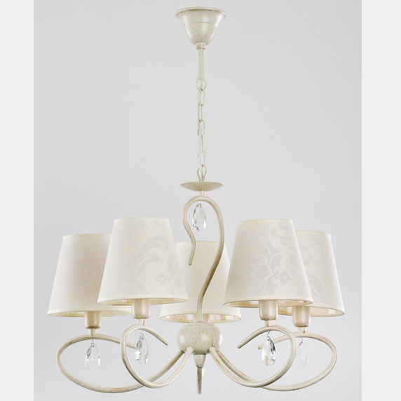 - Les styles de campagne et la Provence impliquent la présence d'un lustre à l'intérieur avec des éléments forgés et des lampes à bougies. Les lustres ont un aspect assez harmonieux, la surface sous bronze ou argent est spécialement vieillie.