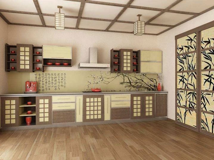 - Le style japonais se caractérise par la présence d'abat-jours carrés sur la tige. Les lustres en verre coloré semblent harmonieux.