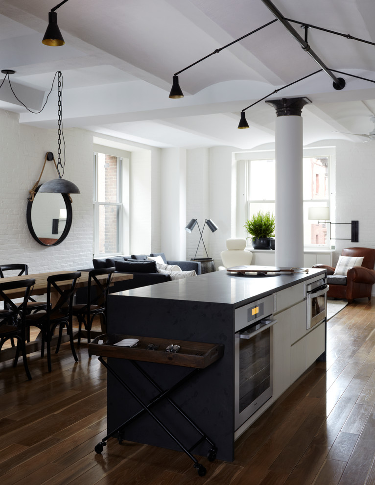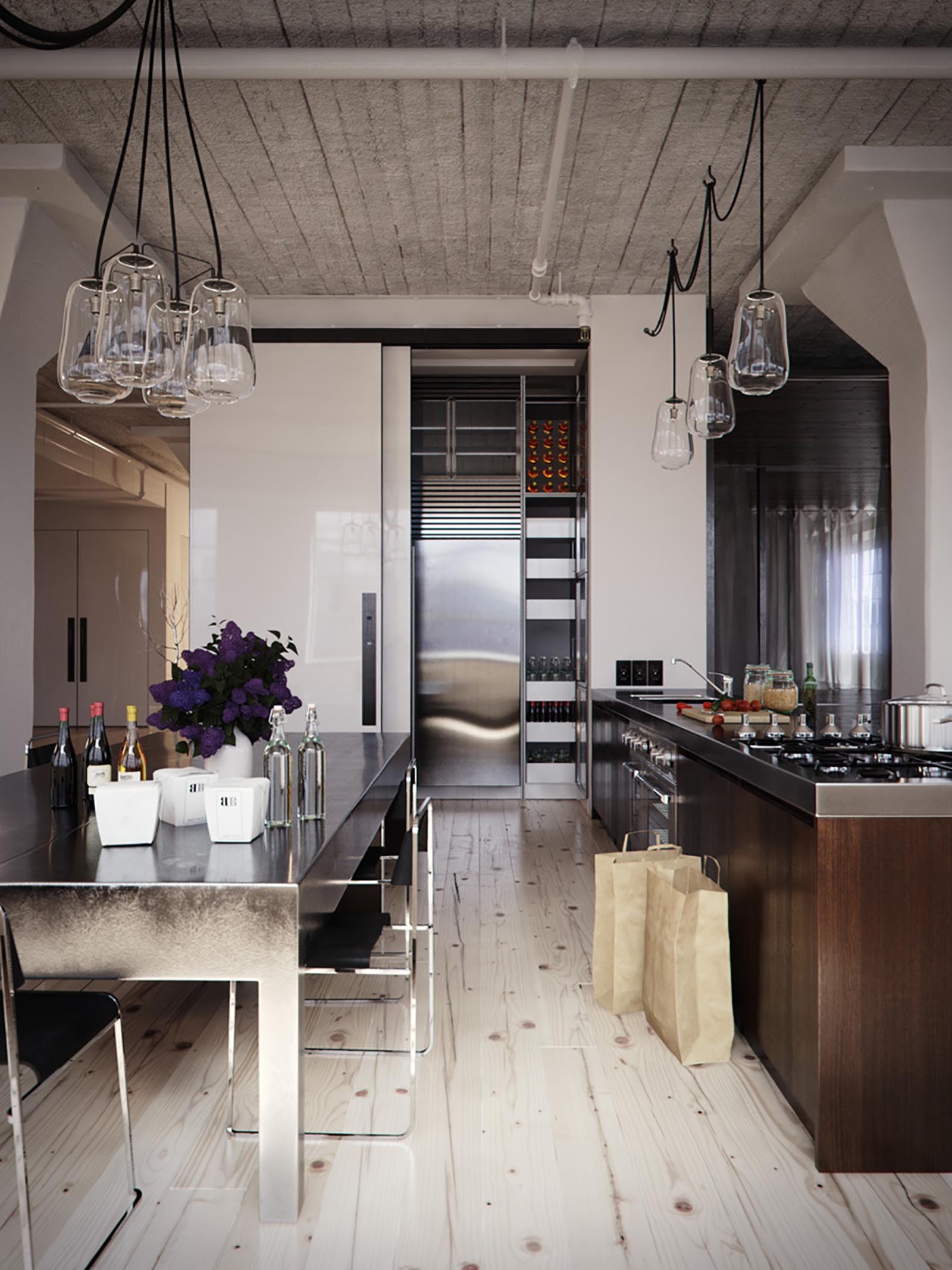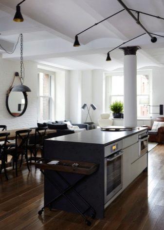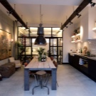 L'éclairage dans ce style implique un style brut mélangé à des motifs vintage. Souvent, les lampes et les lustres dans le style loft sont réalisés selon le type de réverbères anciens. Une telle conception s'intègre bien dans le pays, shebby chic ou intérieur scandinave.