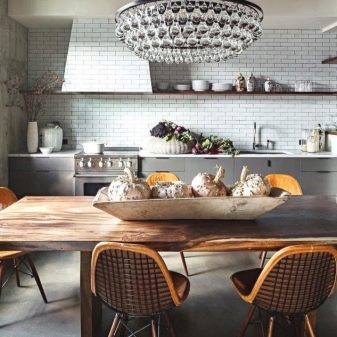 Le lustre est très beau dans une petite cuisine où sa fonctionnalité est maximale. Plus la pièce est grande, plus il y a de cornes.