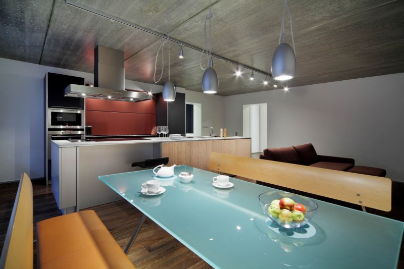 Le coin cuisine est un lieu de forte humidité et le territoire de la pollution la plus fréquente et la plus complexe. Par conséquent, lors de l'achat d'un appareil d'éclairage dans la cuisine, vous devez choisir un matériau plus résistant à la saleté et au nettoyage humide.