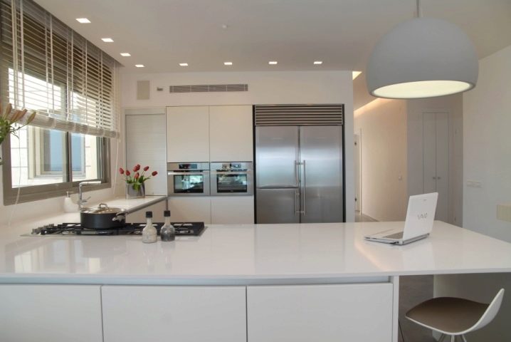 Et vous pouvez même "disperser" des lampes dans tout le plafond.De telles décisions permettent de rendre l'éclairage de la cuisine agréable et uniforme.