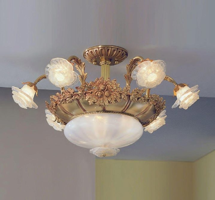 Actuellement, vous pouvez acheter des lustres et des lampes de différentes formes et couleurs.Ils peuvent avoir le plus grand nombre de types et de quantités de lampes - tout dépend de l’imagination du designer.