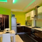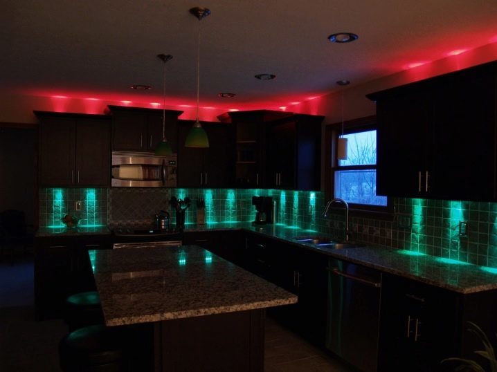 - LED Cette vue est un ruban avec de nombreuses LED pouvant également être montées au plafond pour mettre en évidence la zone de travail ou pour mettre en valeur les différents niveaux du plafond. Ils brillent, dépensent le minimum d’électricité, mais ils sont chers.