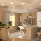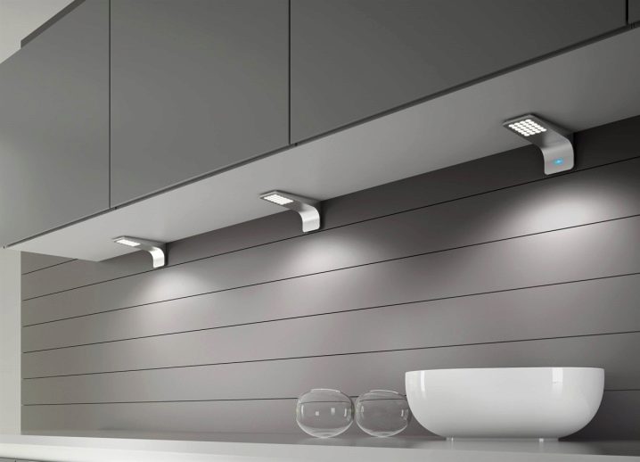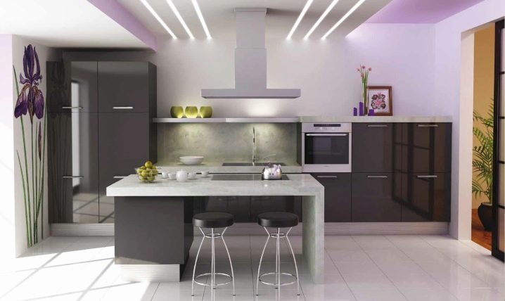 Les projecteurs sont installés dans des plafonds suspendus, dans la zone d'éclairage de la zone de travail. Dans une petite cuisine, ils peuvent être installés comme éclairage principal. La meilleure option serait donc de connecter la zone de cuisson à un commutateur séparé.