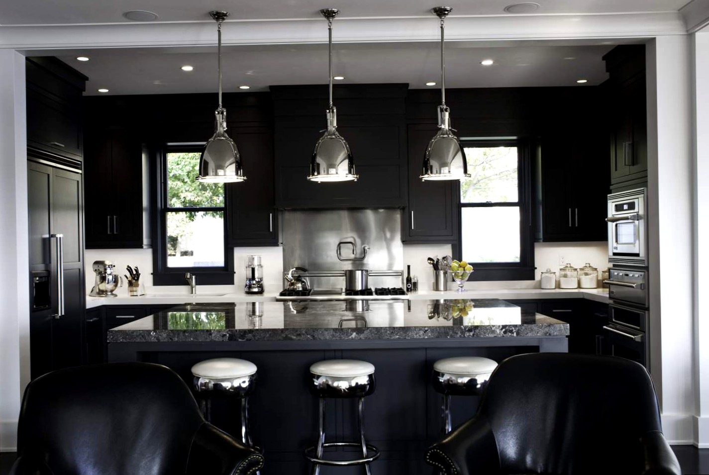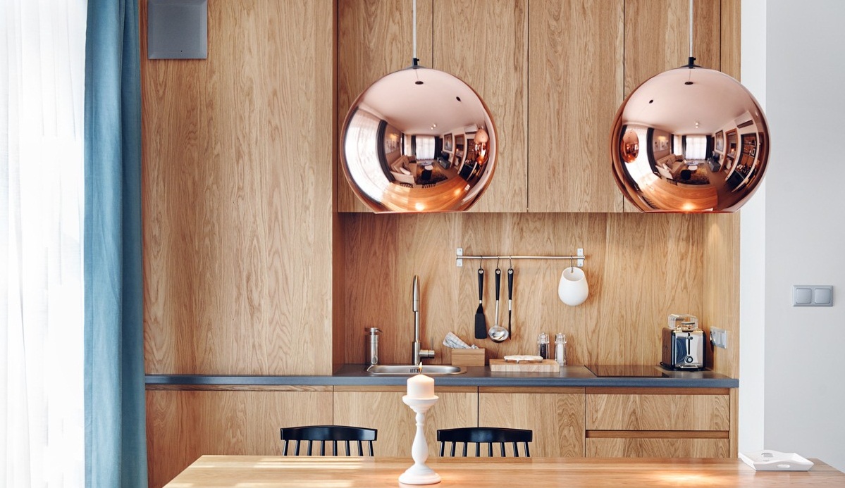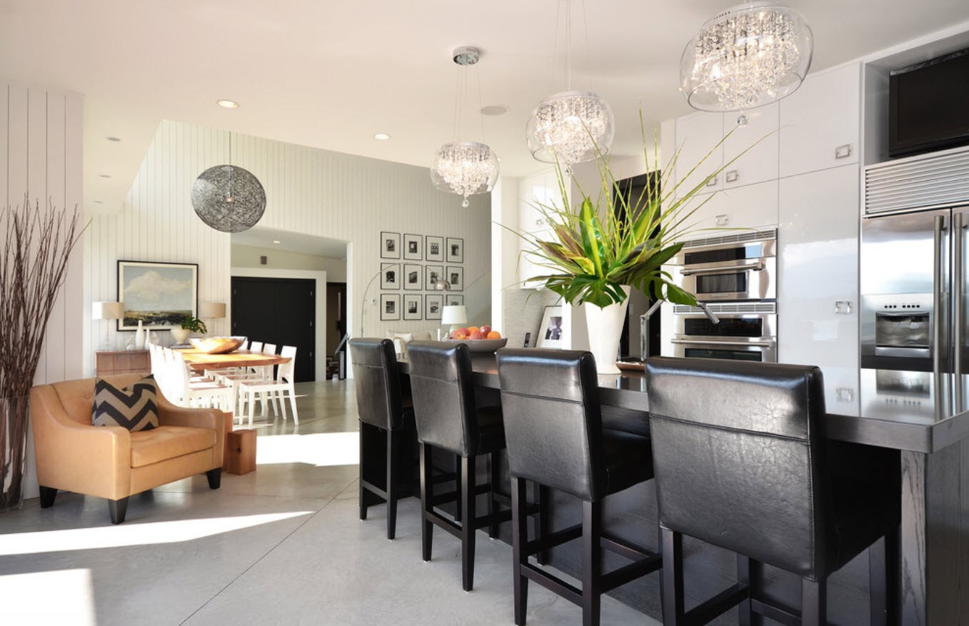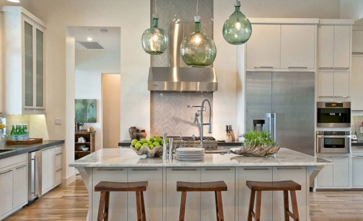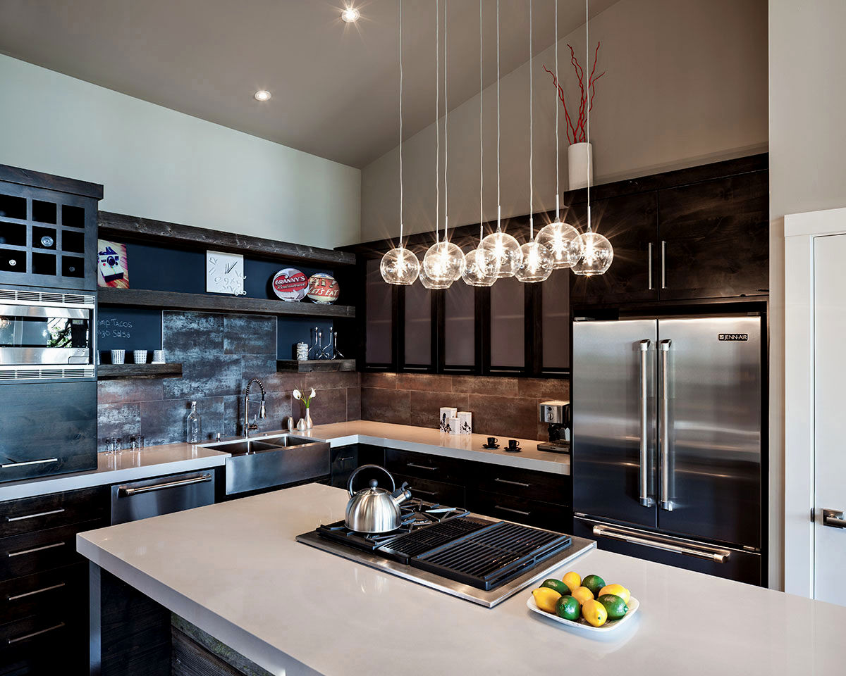 - Pour la cuisine de style moderne, un lustre de plusieurs grandes suspensions conviendra.