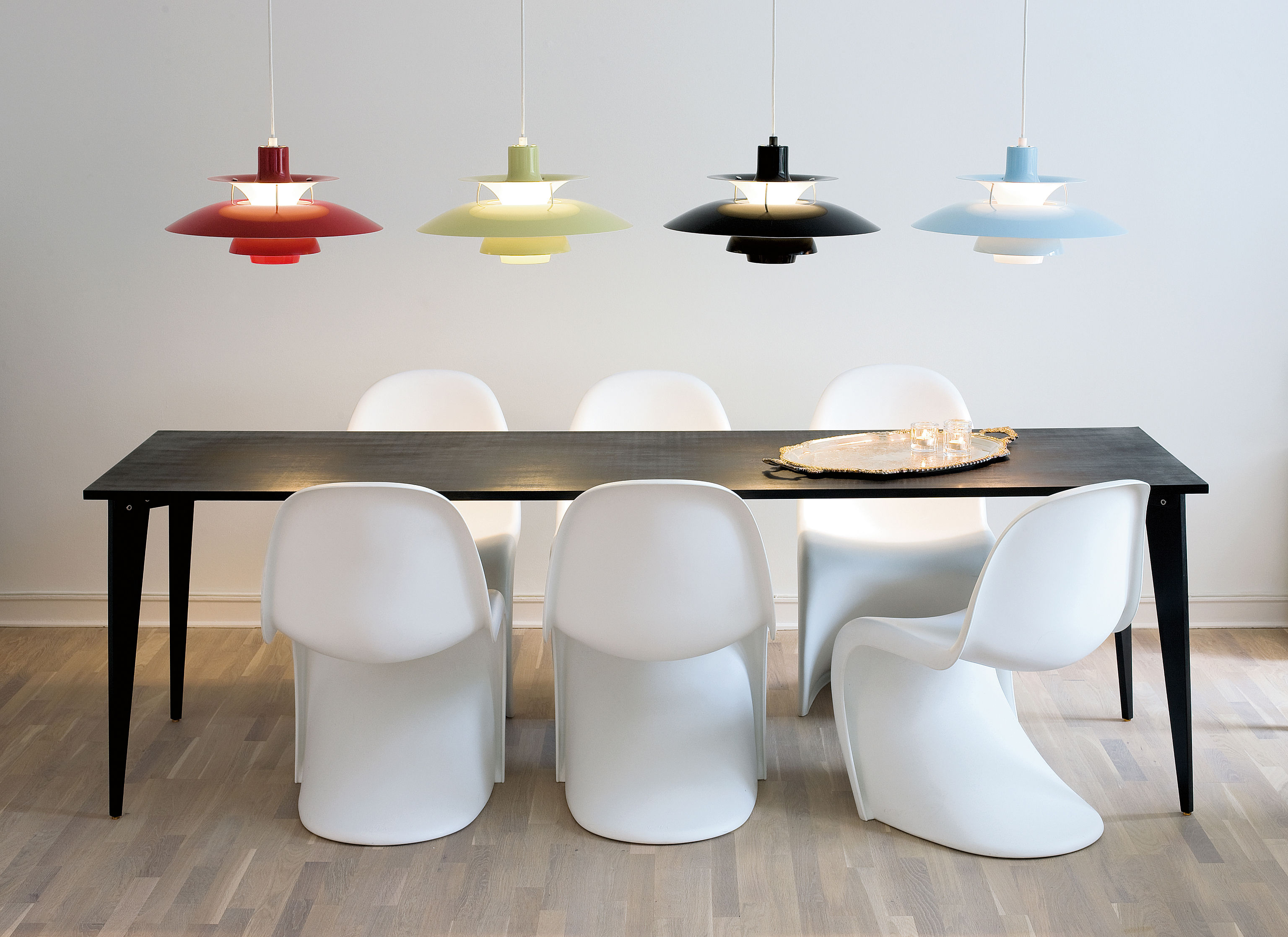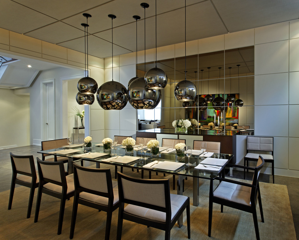 - Une lampe spatiale pour éclairer la salle à manger est une autre idée du style moderne.