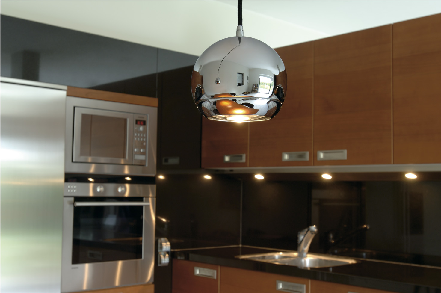 - Vous ne pouvez pas acheter de lampes avant de vous décider pour la cuisine. Vous devez d’abord faire un projet de cuisine, déterminer où et quel type de lumière est nécessaire, tendre les câbles et ensuite seulement acheter des appareils d’éclairage.