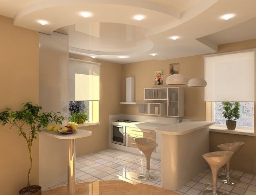 Les plafonniers peuvent également être intéressants à décorer, le plafond en forme de lunettes aura fière allure sur le plafond de la cuisine.