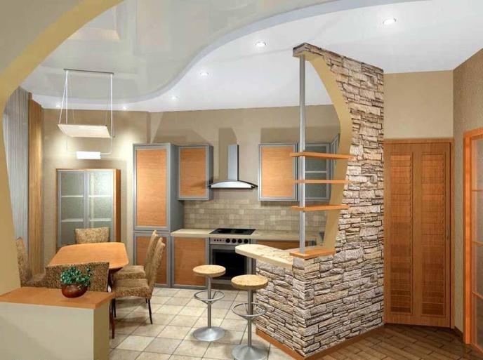 Les plafonniers, au contraire, conviennent à une petite cuisine. Ils n'occuperont pas d'espace, et si vous choisissez une forme ovale ou rectangulaire, ils le sépareront.
