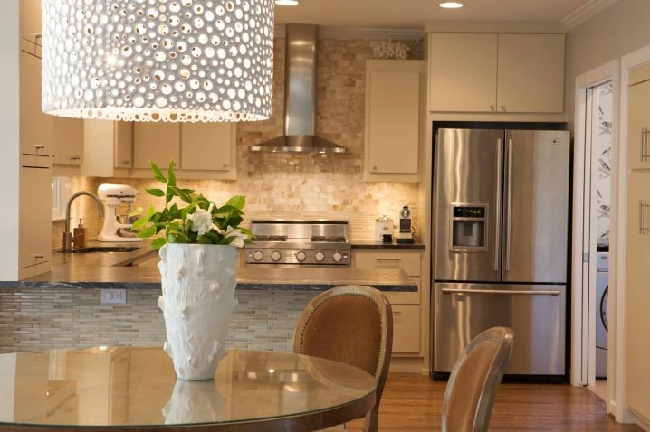- Des lustres brillants à l'intérieur de la cuisine donneront de l'austérité à votre intérieur.