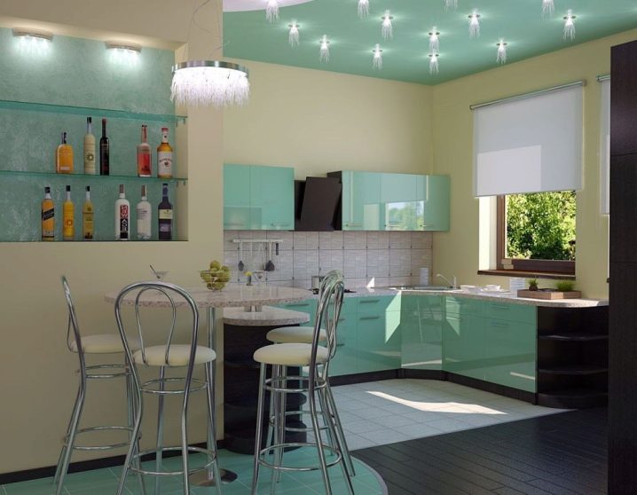 La cuisine devrait être remplie de lumière. Mais lorsqu'il est impossible de le faire aux dépens des fenêtres, des plafonniers viennent à la rescousse.
