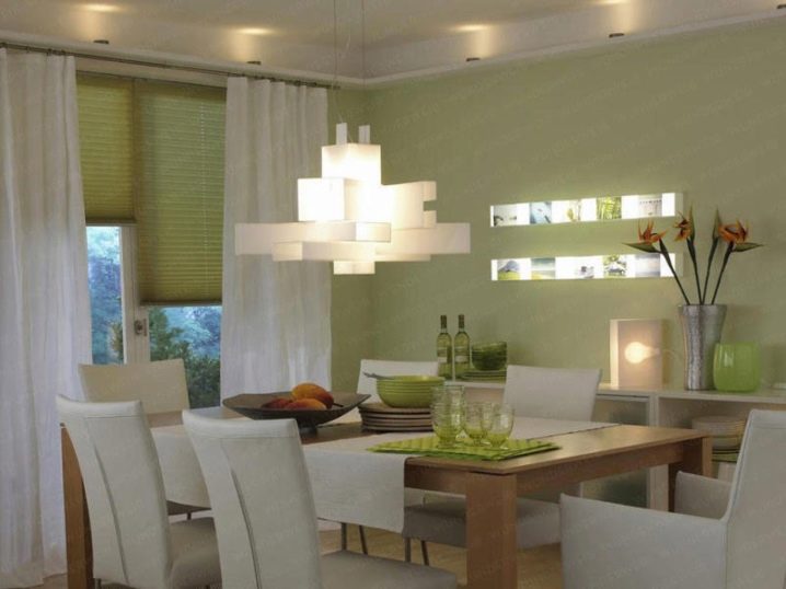 - L'éclairage moderne de la salle à manger conviendra également à la cuisine de style moderne. Lumineux et animé.