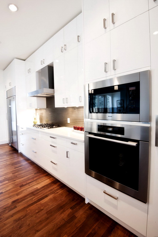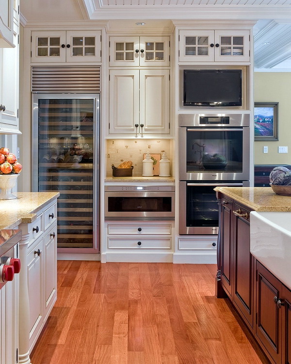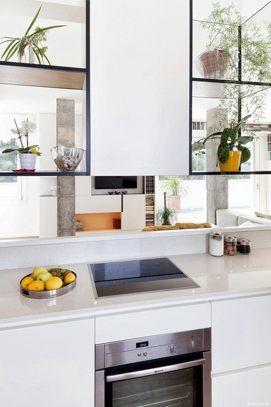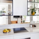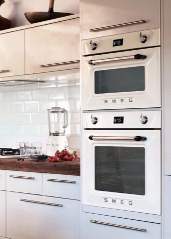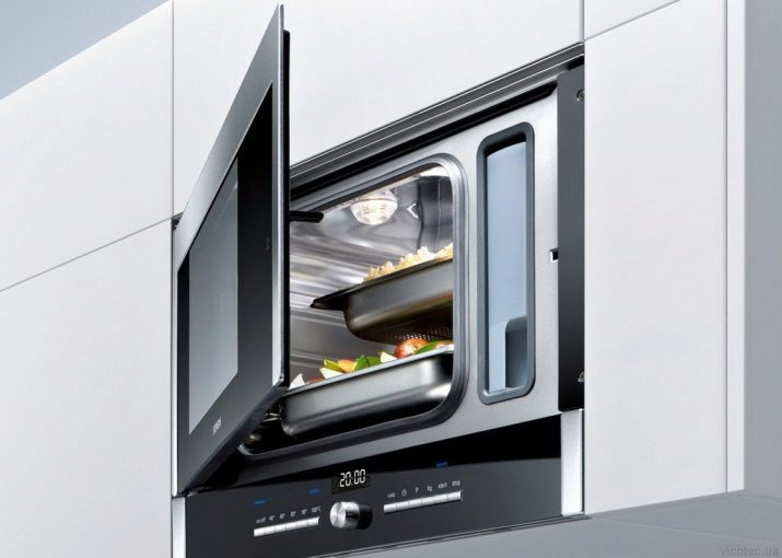 Selon le type de placement, les fours à vapeur peuvent être intégrés dans le comptoir ou dans le placard. Dans le premier cas, il y a une unité de contrôle des instruments en haut et un couvercle recouvrant le récipient de cuisson. Toute la "farce" est directement dans la table, il a l'air esthétiquement et proprement.